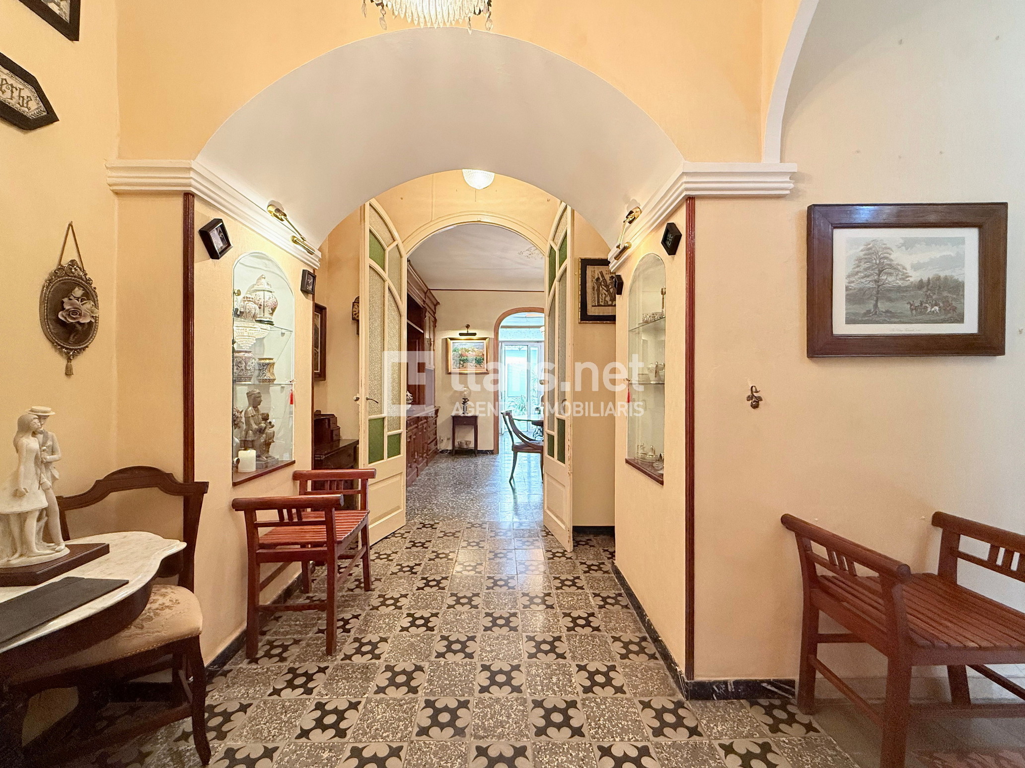 Aquesta casa, construïda el 1930, conserva elements originals com portes i vidrieres antigues, sostres alts i bigues de fusta, que li aporten un caràcter autèntic i encantador. Equipada amb terres hidràulics, cadira salva escales, calefacció amb radiadors a totes les estances i aire condicionat per split a la suite.