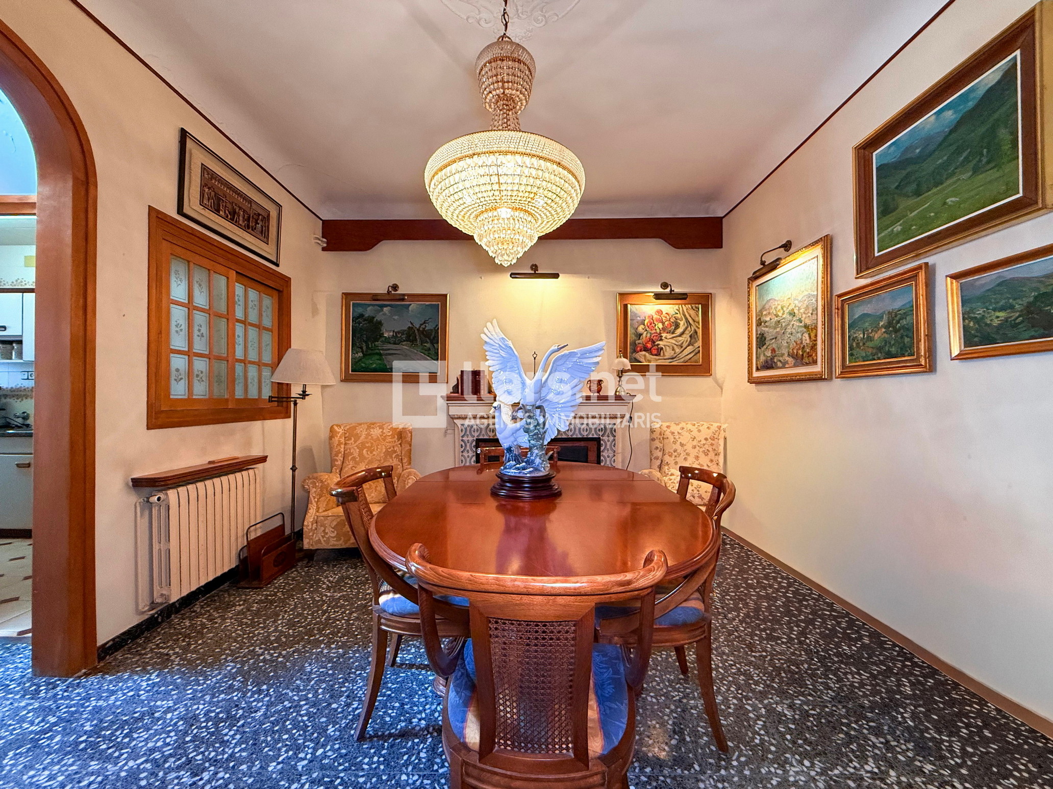 Aquesta casa, construïda el 1930, conserva elements originals com portes i vidrieres antigues, sostres alts i bigues de fusta, que li aporten un caràcter autèntic i encantador. Equipada amb terres hidràulics, cadira salva escales, calefacció amb radiadors a totes les estances i aire condicionat per split a la suite.
