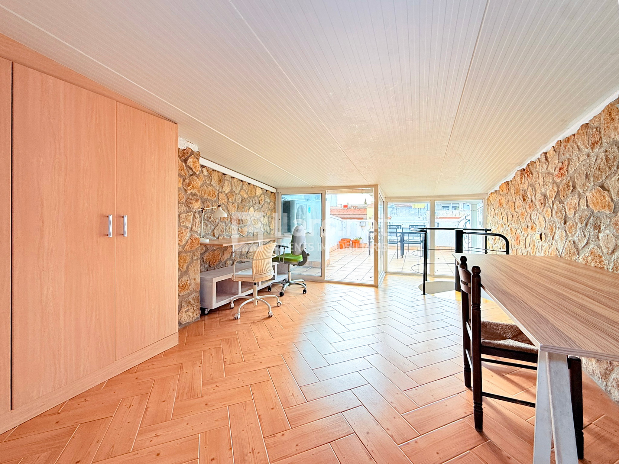 Amb 92 m² i recent reformat, aquest habitatge s’organitza en dues plantes. La principal es distribueix en 2 habitacions, incloent una suite doble amb bany complet, totes elles amb llum natural i un ambient molt acollidor. La cuina independent és pràctica i funcional, mentre que el gran menjador de 30,7 m², amb llar de foc, sostres alts i sortida a un balcó ampli, es converteix en el cor de la casa: un espai càlid i perfecte per compartir moments en família. La planta superior acull unes golfes polivalents de 20 m², ideals com a estudi, sala de jocs o espai de teletreball. Aquest espai inclou safareig i té accés directe a una terrassa-solàrium de 20 m², un lloc privilegiat per gaudir del sol, relaxar-se o crear-hi una zona chill-out.