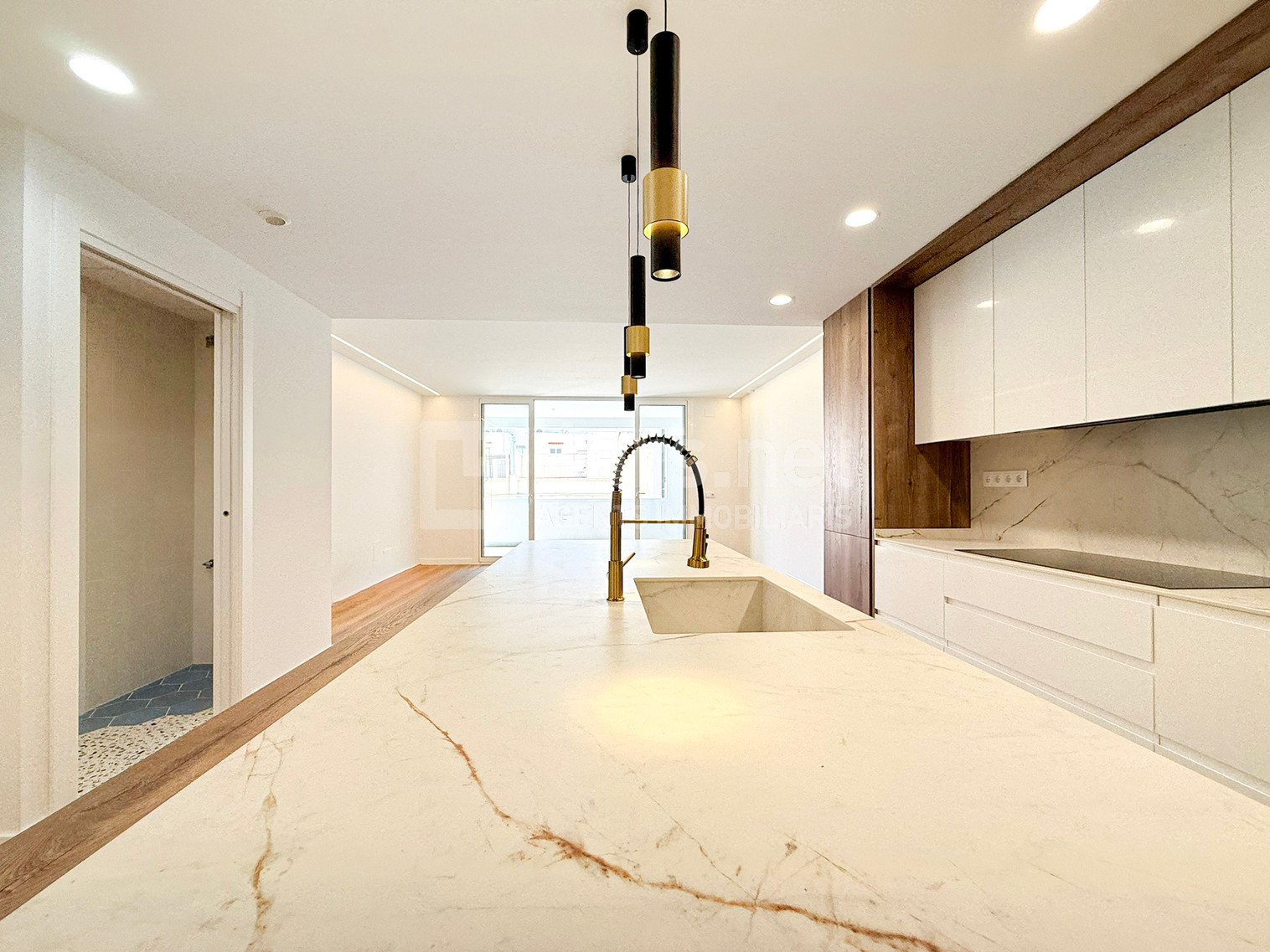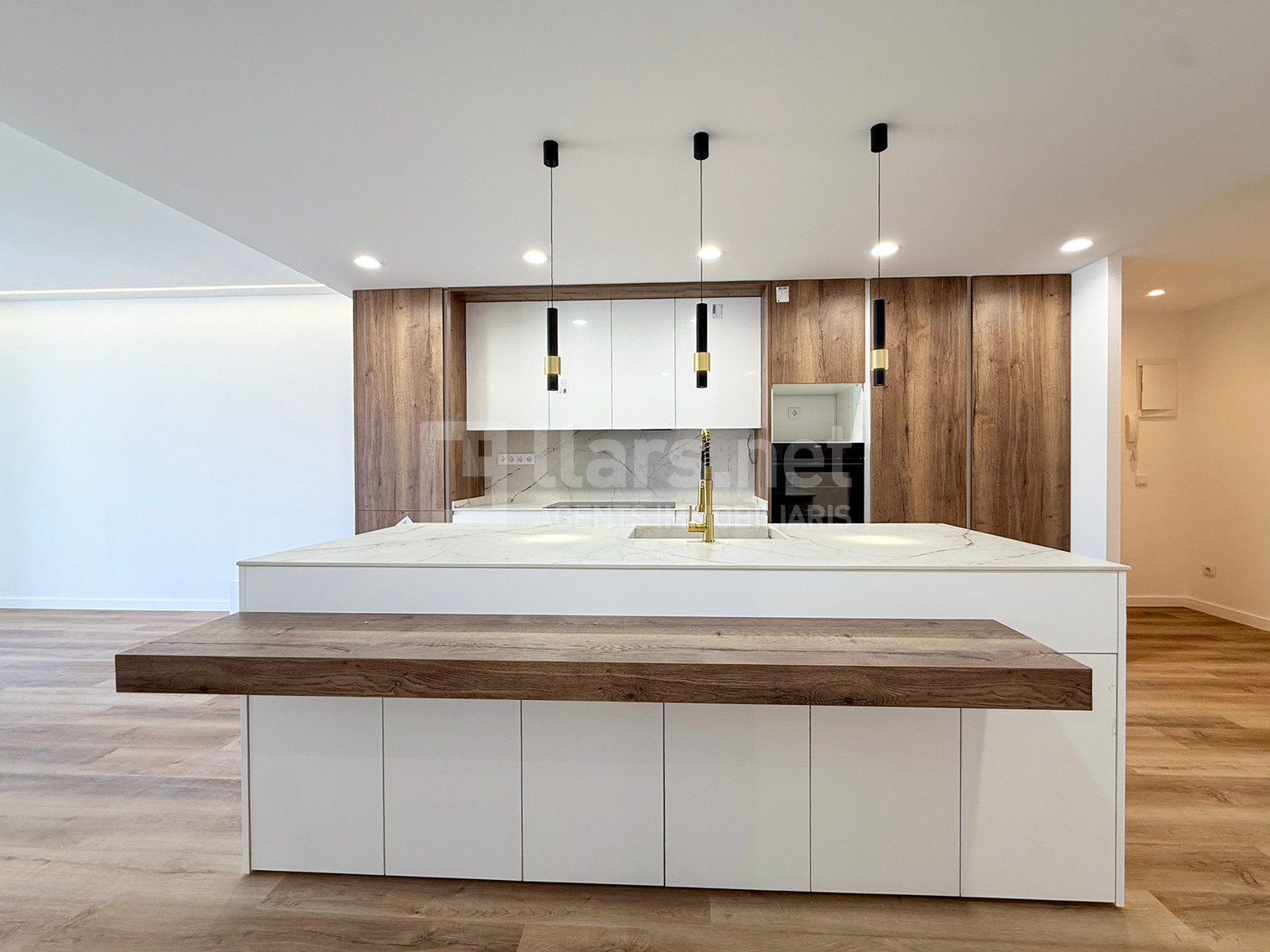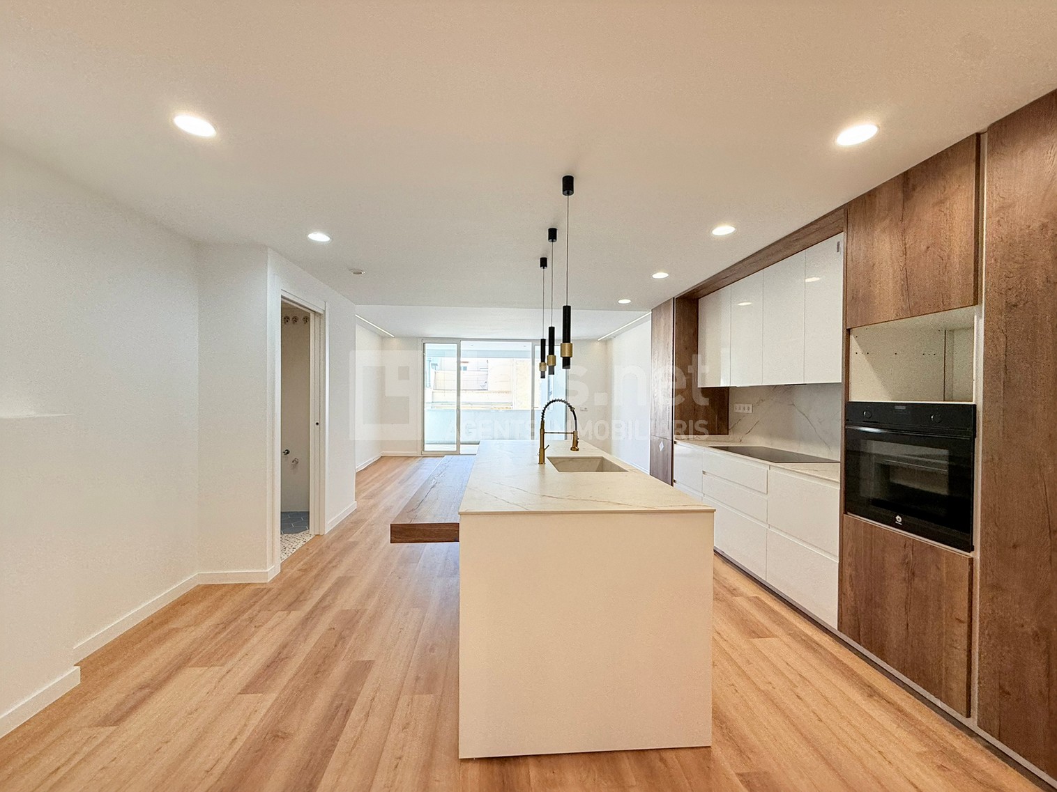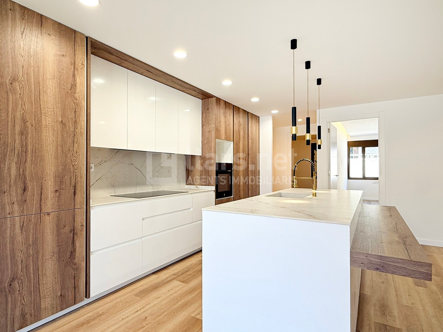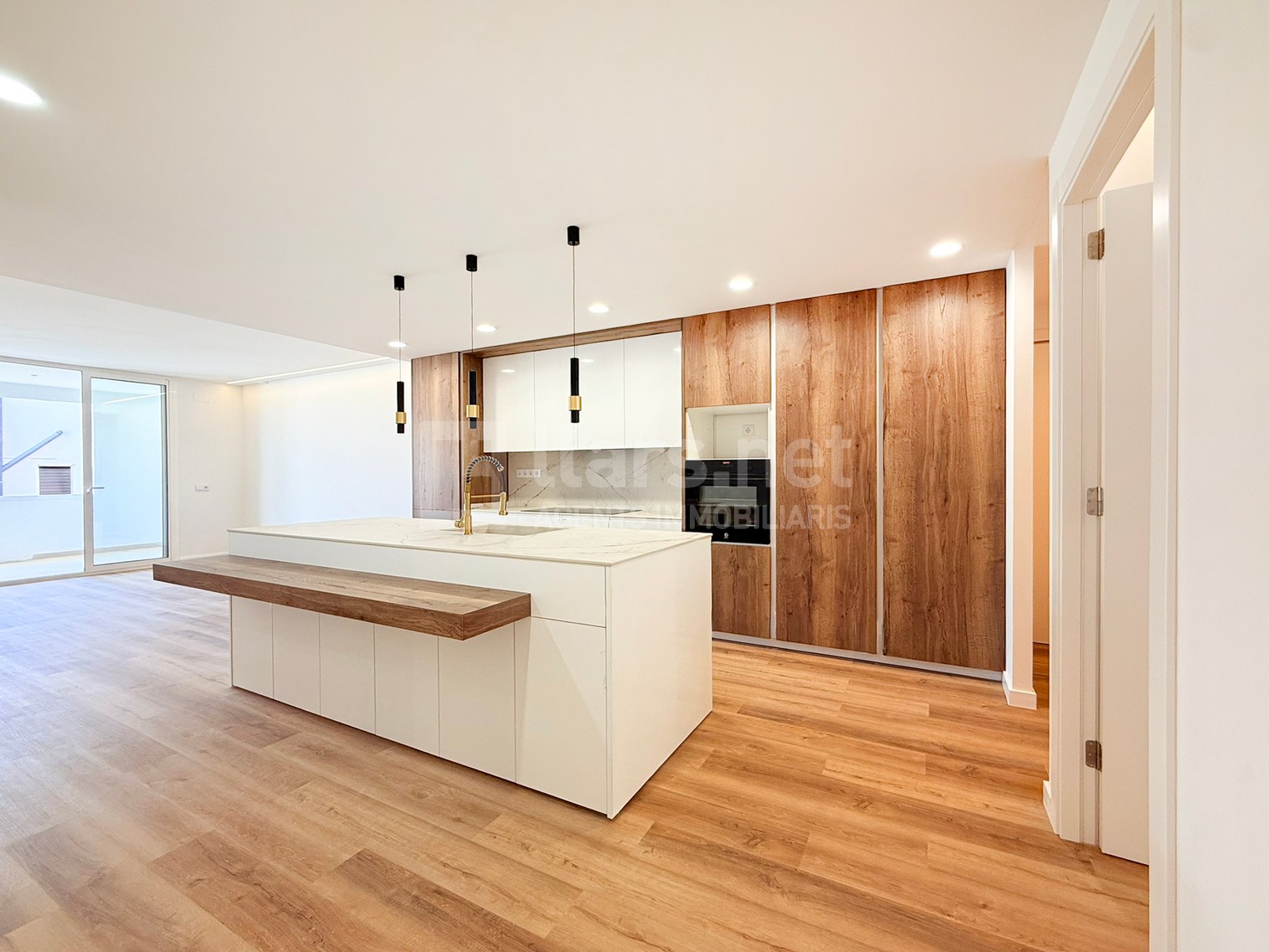 La zona de dia es configura com un ampli espai únic de més de 40 m², on hi destaca un cuina oberta de disseny, amb una gran Illa central, extremadament funcional i totalment integrada a la zona de dia, que combina superfície de treball, espai d’emmagatzematge i zona office amb barra per a àpats informals.