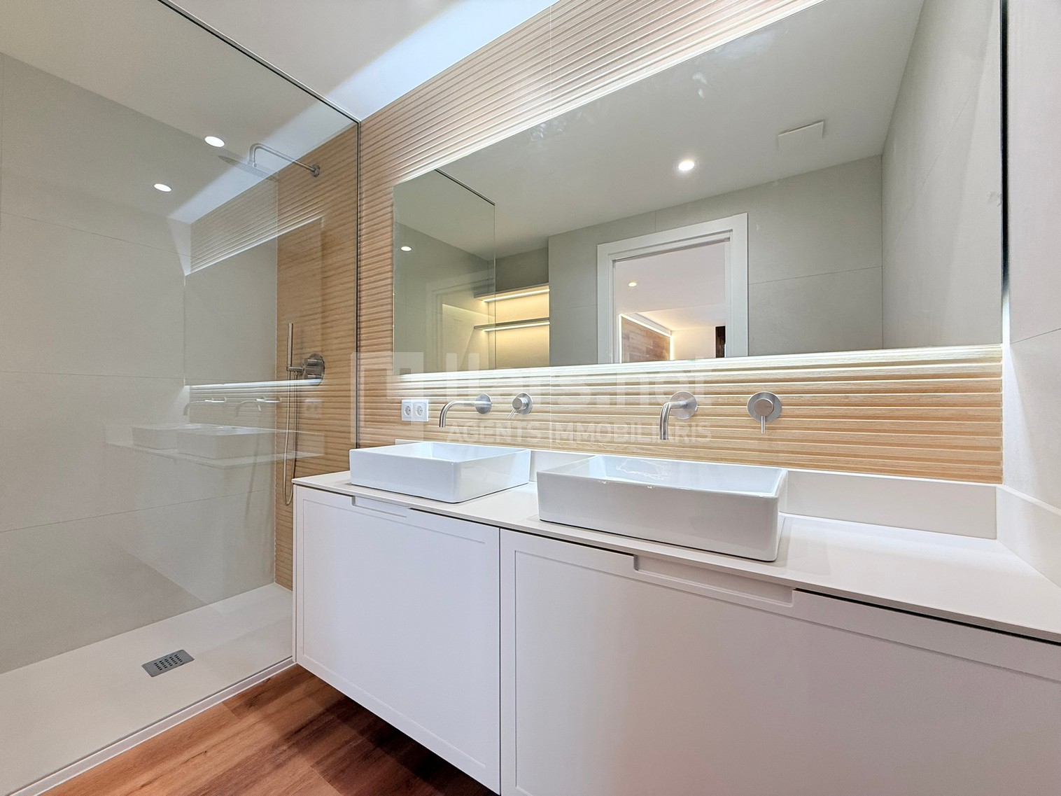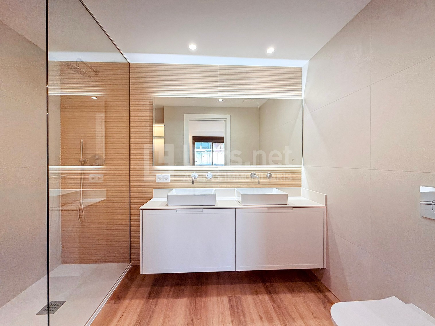 En l’apartat d’equipaments, el pis disposa d’aire condicionat amb bomba de fred i calor per conductes, tancaments d’alumini amb doble vidre, terres de parquet polivinílic de màxima qualitat, il·luminació encastada al sostre amb llum de difusió a totes les estances.