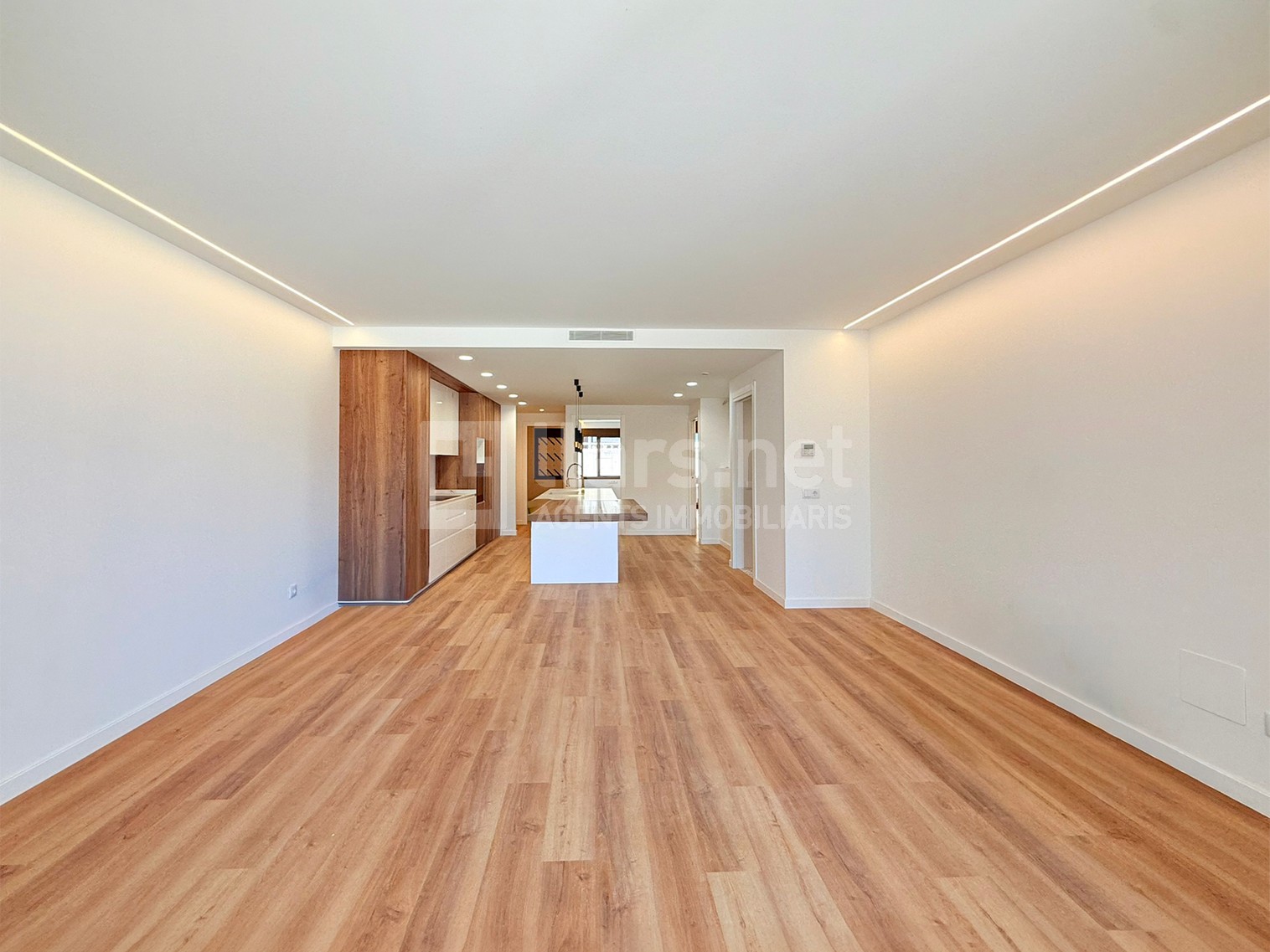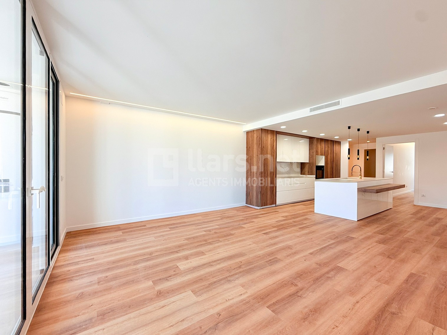 La sala d’estar, annexa i diàfana s’emmarca dins d’aquest únic àmbit, amb una distribució flexible que permet diferents configuracions i una clara orientació cap a l’exterior, potenciant la sensació d’amplitud i lluminositat.